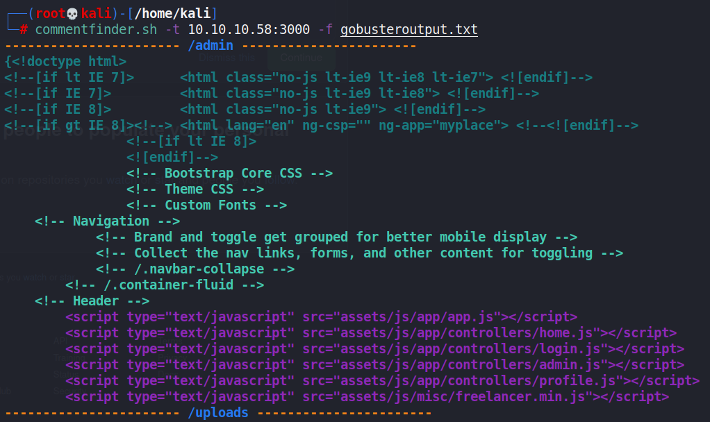 commentfinder.sh -t 10.10.10.58:3000 -f port3000dirs.txt